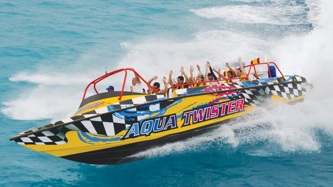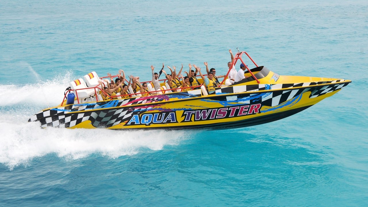 ¡Una de las mejores cosas que hacer en Cancún, la adrenalina, la velocidad y la emoción del Aquatwister! Siente la brisa en tu cara y la adrenalina correr por tus venas. Una experiencia especial para los aventureros: Ir a toda velocidad y frenar de golpe. Girar velozmente a 270° y sentir la fuerza de la aceleración y el freno repentino.