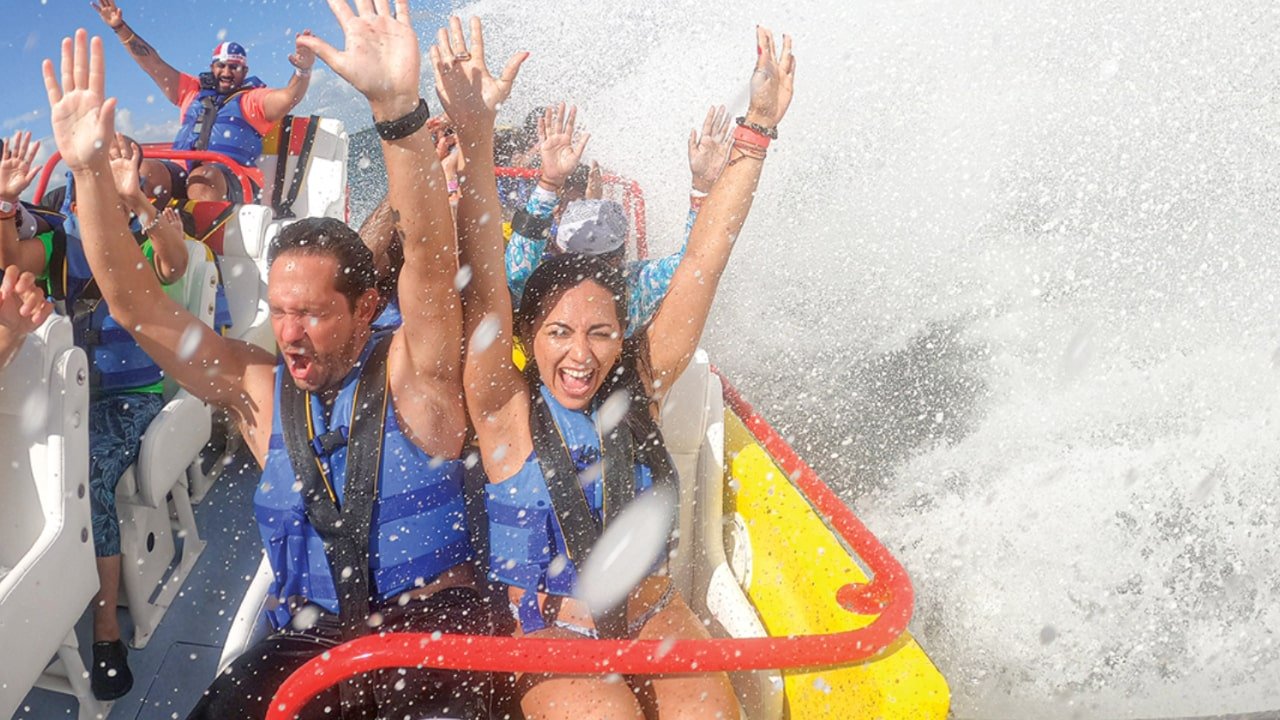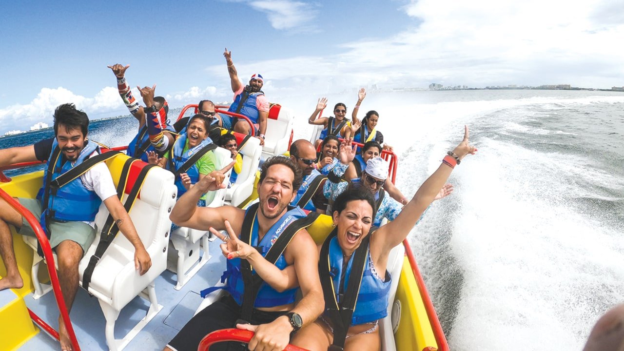 De todas las actividades en Cancún esta es la más solicitada por los amantes de la adrenalina. Nuestros guías te apoyarán en la correcta colocación de tu chaleco salvavidas y las correas de seguridad en uno de los 16 asientos ubicados en nuestro veloz bote. ¡Prepárate para mojarte! Este viaje lleno de diversión solo puede ser comparado por su velocidad con la montaña rusa, gira una y otra vez por la Laguna Nichupte.