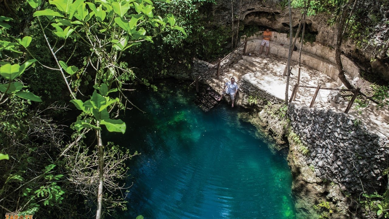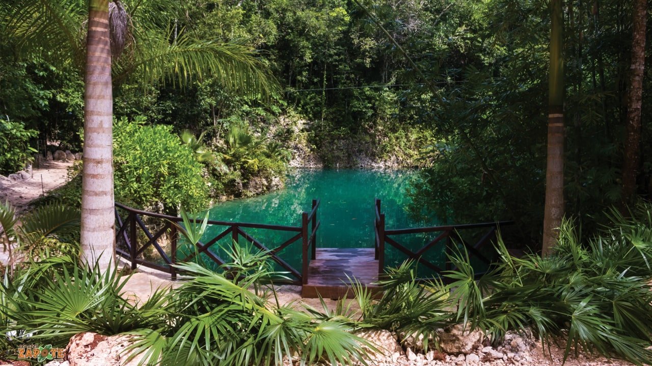 El cenote Zapote es uno de los mejores cenotes cerca de Cancún, a pocos kilómetros al sur hay un desvío llamado ‘La ruta de los cenotes’. La mayoría de los tours de cenotes conocidos se realizan a lo largo de este tramo y muchos de los cenotes están inter-conectados.