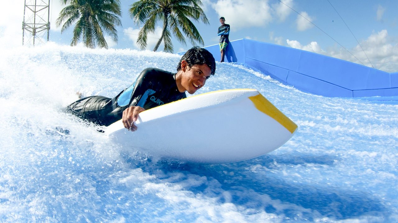 El FlowRider es un generador que forma olas sobre una superficie inclinada, y es muy divertido independientemente de la edad, tamaño y habilidad del usuario.