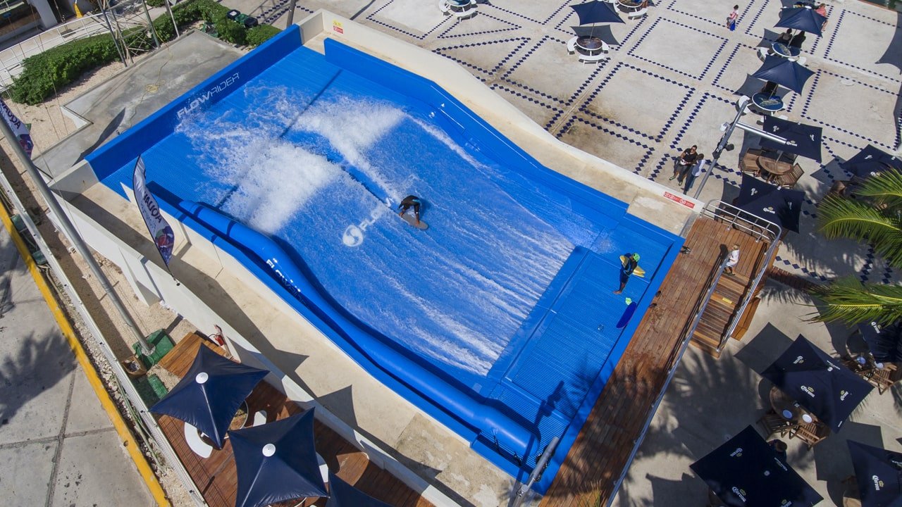 El flow rider esta en el top de las actividades recreativas en Cancún. La actividad provee completa seguridad y facilidad para todos, ya que la superficie es suave como la de un trampolín. Aunque puedas ver a algunos usuarios más avanzados practicando todo tipo de trucos, no te desanimes — es una actividad fácil también para los principiantes. Nuestros instructores son reconocidos a nivel internacional y te prepararán para que disfrutes toda la diversión del FlowRider.